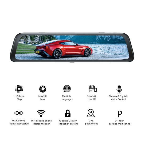 SONY335 4K DVR Rear View Mirror WiFi GPS Dash Cam with Dual Mirror Vehicle Driving Recorder Rearview Black Box,